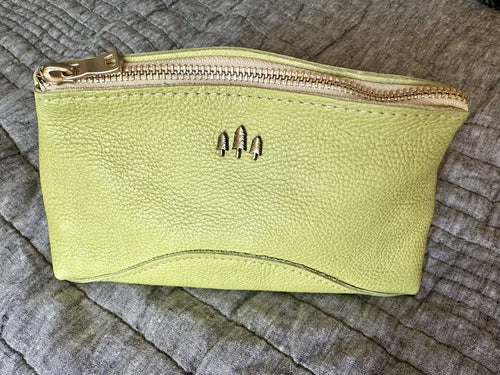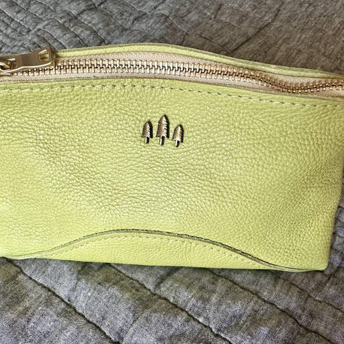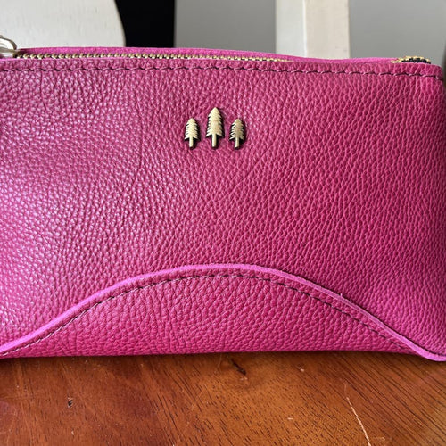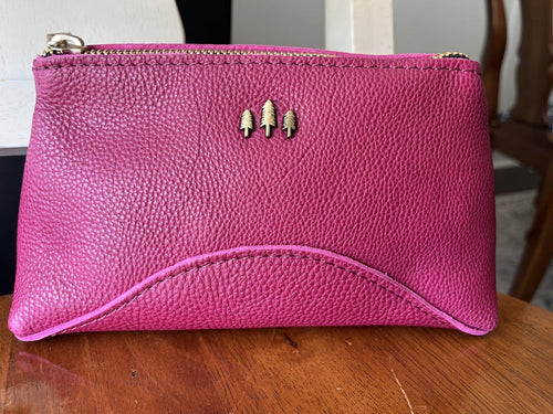 This makeup pouch is just elegant. The shape, the trees, the leather. Holds what I need and looks more special than the usual rectangular makeup bag.