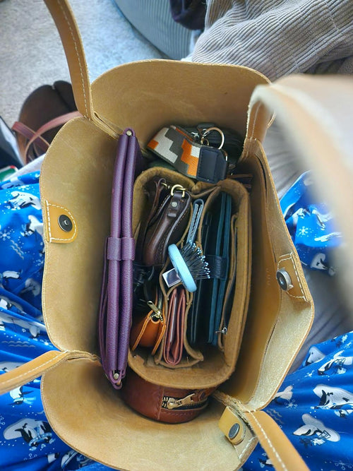 Honey is a beautiful color. Great shoulder drop not too heavy to carry when full