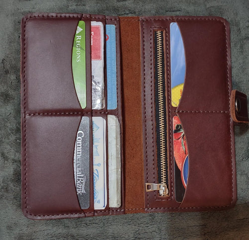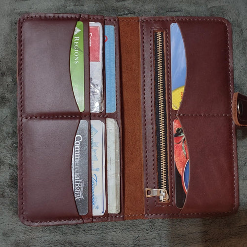 This wallet is perfect! It is the best size, has just the right number of slots for cards and the zipper compartment is great for coins. The leather wears so beautifully! This is my third color choice and I know I will get more since this is my wallet peace. ☮️