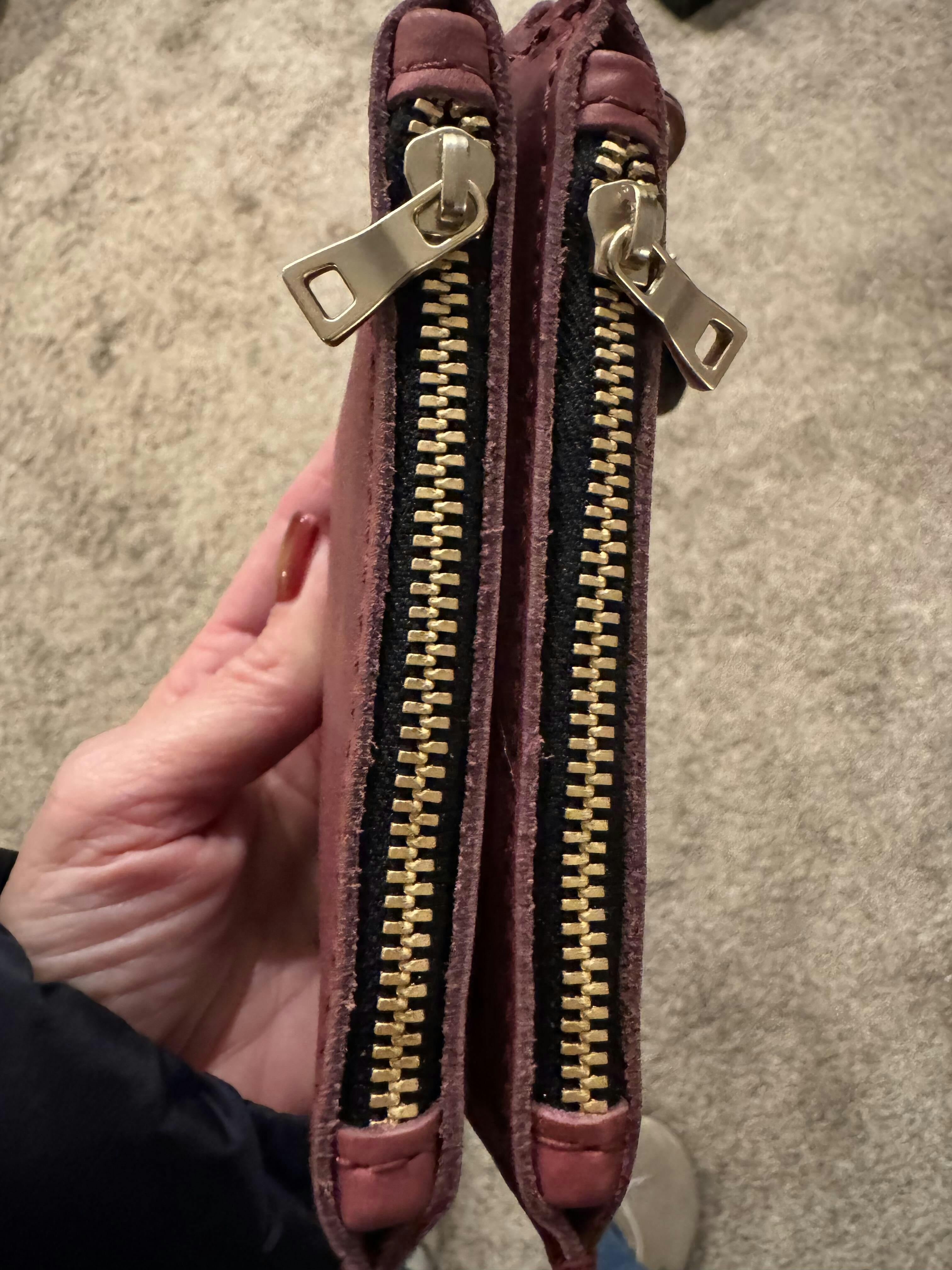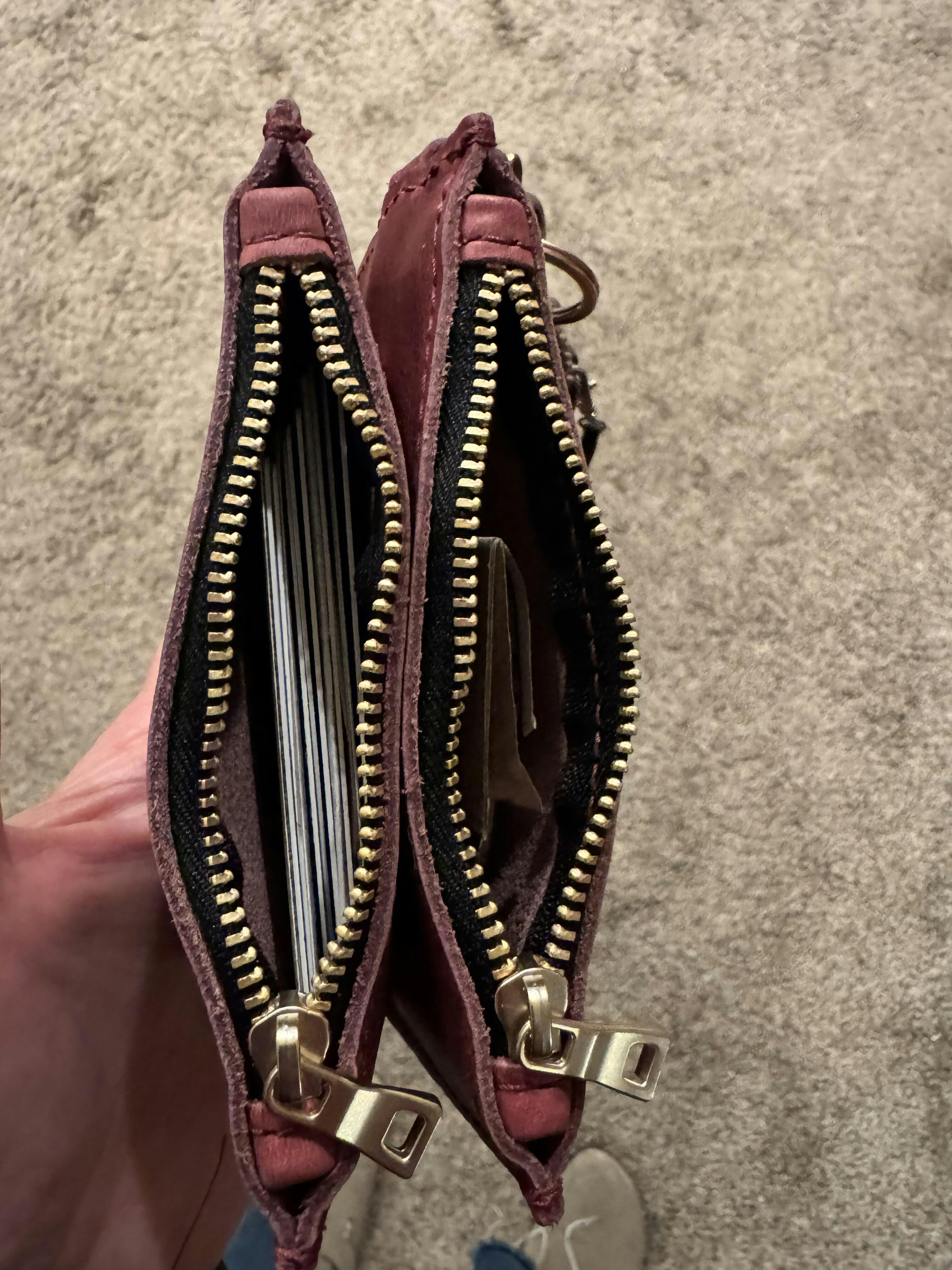 This is my first item in biscotti. It's a nice warm brown. The zip-zap can fit all my daily carry cards and a little cash or change. It's a handy smaller wallet for my collection.